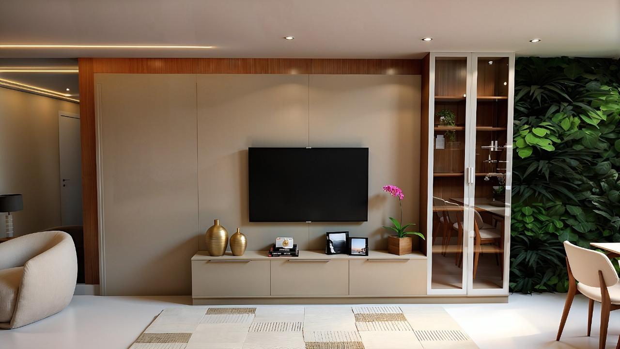 A solução foi integrar os ambientes da área social por meio de um projeto de marcenaria inteligente, que promove continuidade visual, praticidade e conforto. Os móveis planejados foram desenhados com linhas contemporâneas e acabamentos atuais, criando um espaço acolhedor e funcional. O resultado é um ambiente pensado para receber, conviver e compartilhar momentos, unindo estética, conforto e integração em um projeto que acompanha o estilo de vida do casal e de toda a família.